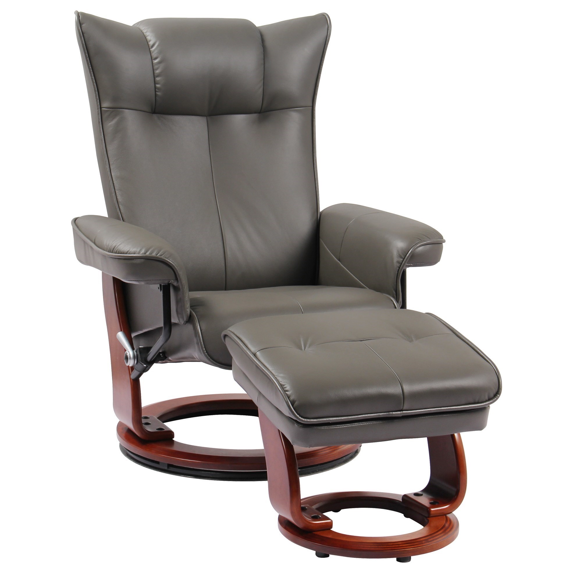 Divani Casa Charles Mid Century Grey Leather Reclining Chair W Ottoman